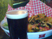Hillary paypalled me a donation to pick up a beer she called a "Belgian Waffle", kindof like a black and tan, but made with Blue Moon instead. I'd never heard of it before, but I like Guinness, and I like Blue Moon, so I figured the combination of the two would be allright. And it was. Glory be!