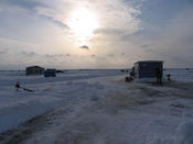 Lee sent me a contribution for some beer just in time for my annual Ice Fishing trip in Central Minnesota. For anybody who has never done it, this is quite the Minnesota Cultural Experience. A dozen or so of us drive out to the middle of a frozen lake, rent cabins on the ice that we sleep in, and spend a weekend drinking, playing poker, and occasionally dropping a line through a hole in the ice and try to catch some fish.